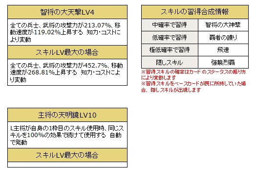 ・変化系スキルを所持している武将カードの1枠目のスキルが発動した際、同じ効果で発動します。