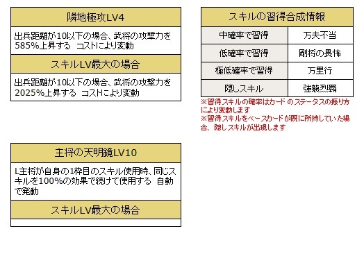 ・「初期所持スキルLV」とは該当武将が武将図鑑で紹介されているスキルLVを指します。