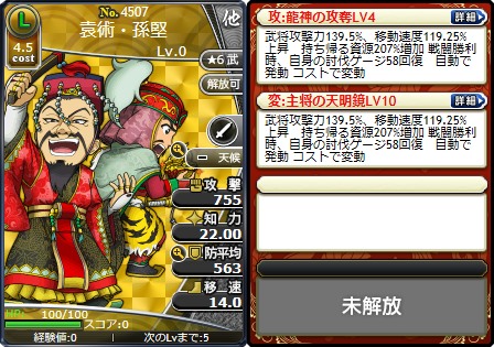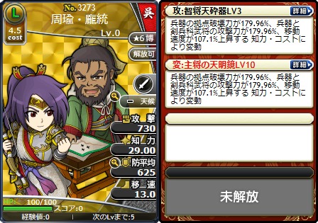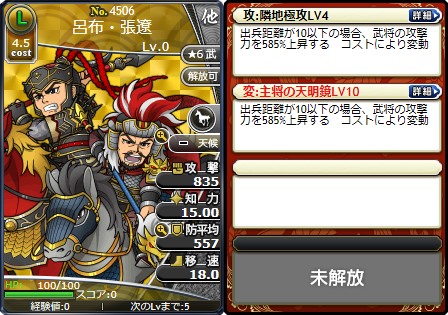 ・初期所持スキルLVより高いスキルLVで排出された武将カードを「カード倉庫」へ移動させた場合、