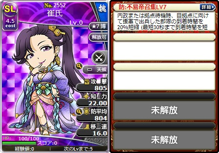 「不易帝召集(ふえきていしょうしゅう)LV7」を所持した「No.2552 SL崔氏」などの