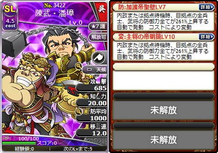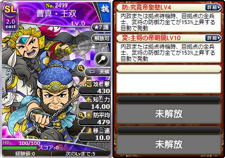 同じ武将カードを引いた場合でもスキルLVが異なる場合もございます。