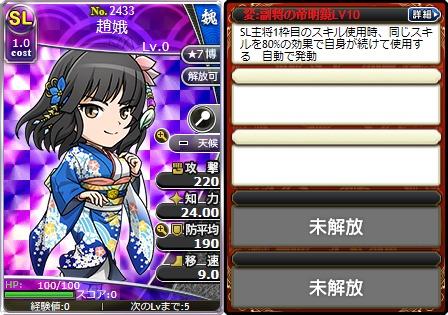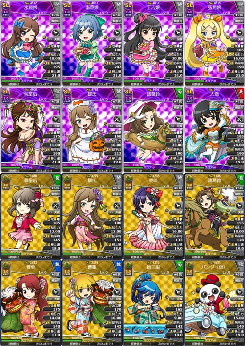 コスト1.0のレアリティSL、Lの武将カードのみの