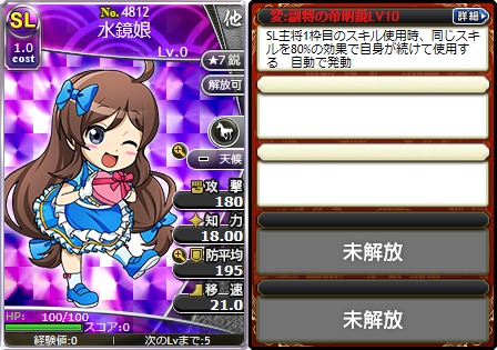 「副将の帝明鏡LV10」を所持した「No.4812 SL水鏡娘」、
