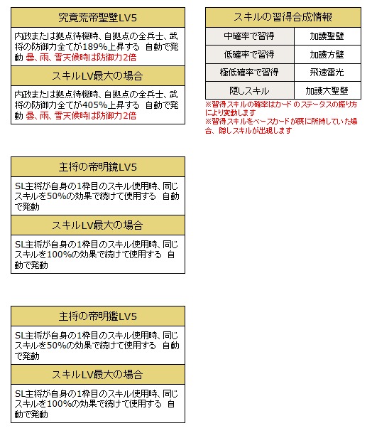 「究竟荒帝聖壁(くっきょうこうていせいへき)LV5」「主将の帝明鏡LV5」