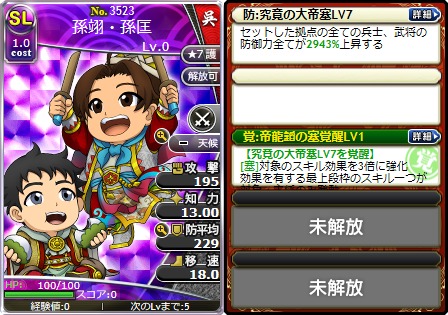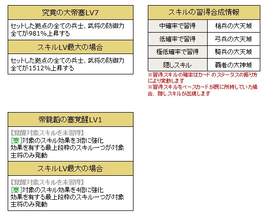 「究竟の晴帝勅令LV5」「帝龍韜の威覚醒LV1」を所持した