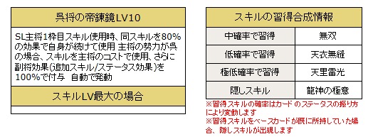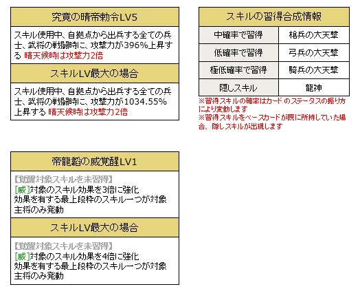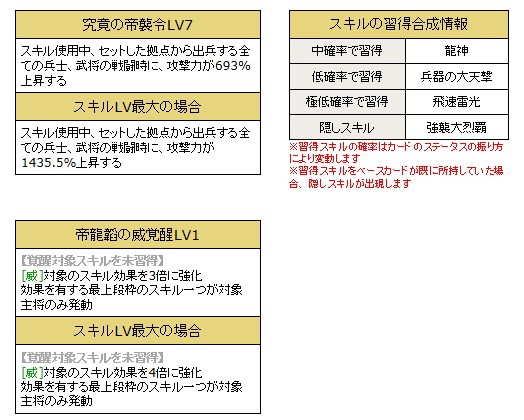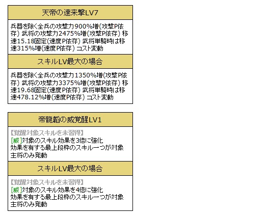 「天帝の遼来撃LV10」、「帝龍韜の威覚醒LV10」、