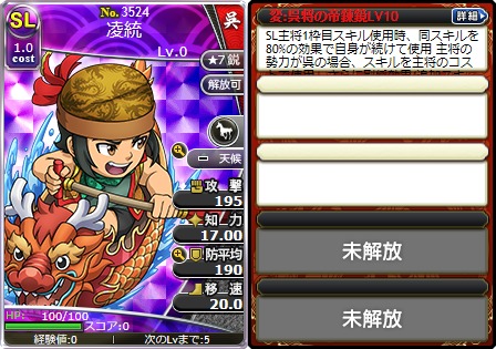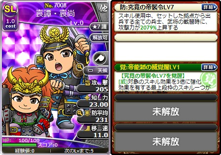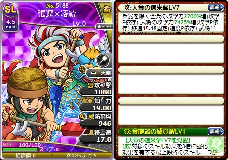 「天帝の遼来撃(てんていのりょうらいげき)LV7」「帝龍韜の威覚醒LV1」を所持した