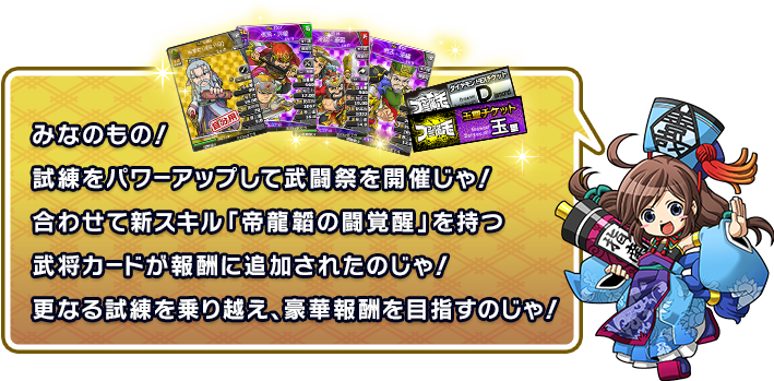 | 1~50位 | 1~25位 | No.7001 SL劉表・張繍(錘) ×1 No.4368 UR南華老仙(自分用) ×1 ダイヤモンドEXチケット ×1 |