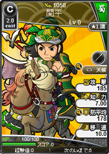 関羽の養子。同じく劉備の養子である劉封とともに、諸葛亮の策を得て、魏の大将夏侯惇の軍を退けるなどの武功をあげる。後に入蜀の戦いに身を投じていたが、軍師龐統の死を報告に戻ってからは、父の守る荊州に留まった。現在は関羽の従者として関帝廟に祭られている。